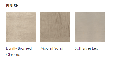 This regal bed is a dramatic showpiece with gleaming charm. Its distinctively shaped headboard features the slightest of curves and is outlined with a metal inlay around its panel. Silver Curly Maple veneers add luxurious elegance and are enhanced with a palette of finishes in Soft Silver Leaf and Moonlit Sand. Upholstered footboard and rails add a touch of softness and Lightly Brushed Chrome metal ferrules cap the legs for a crisp finishing touch.